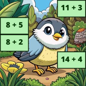 Bu oyunda, bir kuş resmi toplama işlemi taşlarının altında gizlidir. Oyuncular, doğru sayı baloncuklarını eşleşen taşlara sürükleyip bırakmalıdır.